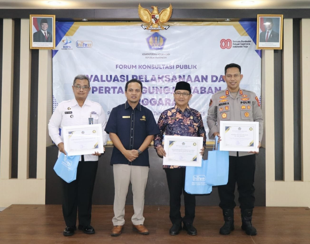 MUSI RAWAS-Kapolres Musi Rawas (Mura), AKBP Agung Adhitya Prananta SH, SIK, MH, menerima penghargaan dari Kantor Pelayanan Perbendaharaan Negara (KPPN), Lubuklinggau, di Kantor KPPN Lubuklinggau, Rabu (27/8/2025).